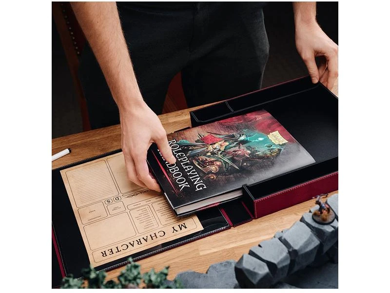 Der Dragon Shield Player Companion ist eine Aufbewahrungsbox und ein Spielbereich für Spieler von Tabletop-Rollenspielen in einem. Benutzen Sie den Player Companion, um Würfel, Miniaturen, Stifte, Charakterbögen und ein oder zwei Rollenspielbücher zu verstauen! Nehmen Sie alles, was Sie zum Erforschen von Dungeons brauchen, in einem praktischen Begleiter mit.