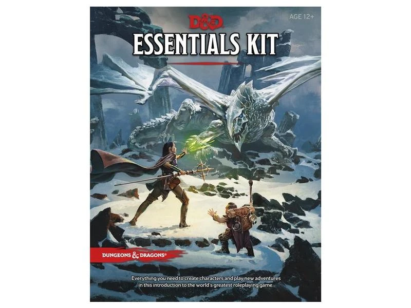 Dungeons & Dragons ist ein kooperatives Spiel zum Erzählen von Geschichten, das sich Ihre Fantasie zunutze macht und Sie einlädt, eine fantastische Welt voller Abenteuer zu erkunden, in der Helden gegen Monster kämpfen, Schätze finden und Quests bestehen. Das D&D Essentials Kit ist als Einstieg für Spieler gedacht, die D&D noch nicht kennen, aber am liebsten gleich mitten in einer Fantasy-Geschichte anfangen wollen. Diese Box enthält die wichtigsten Grundlagen, die Sie für ein D&D-Spiel mit einem Spielleiter und bis zu fünf Abenteurern brauchen. Ein neu gestaltetes Regelbuch erklärt den Spielern, wie sie Charaktere erstellen, und das beiliegende Abenteuer Dragon of Icespire Peak führt eine neue 1-plus-1-Regelvariante ein.