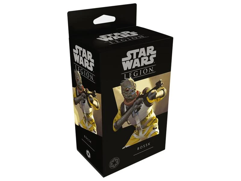 Die Agenten-Erweiterung Bossk enthält eine unbemalte, leicht zusammenbaubare und bis an die Zähne bewaffnete Bossk-Miniatur. Mit seinem charakteristischen Outfit und zwei unterschiedlichen Posen (mit erhobenem Mörser-Gewehr oder dabei, eine Ladung Dioxis zu werfen) wird Bossk sicher jeden Gegner einschüchtern. Zusammen mit der Einheitenkarte und den Aufwertungskarten, die Sie brauchen, um ihn für den Kampf voll auszustatten, werden Sie Bossks drei charakteristische Kommandokarten finden, die Ihnen bei Bedarf Zugriff auf noch mehr Waffen und Taktiken ermöglichen.