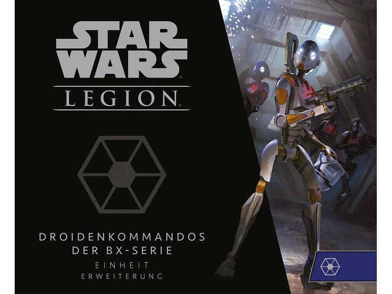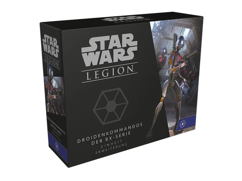 Die sieben unbemalten, detaillierten Miniaturen, die in der Erweiterung Star Wars: Legion – Droidenkommandos der BX-Serie zu finden sind, sind hochgradig anpassbar. Verschiedene Waffenoptionen – einschliesslich Blaster, Vibroswords und eine Dioxisminen – sowie Deflektorschilde. Über ihr Aussehen hinaus laden acht Aufwertungs-Karten dazu ein, die Funktionsweise der Droiden im Kampf zu optimieren, während zwei Einheitenkarten die Möglichkeit geben, sie entweder als vollständige Einheit oder als Zwei-Mann-Team einzusetzen.