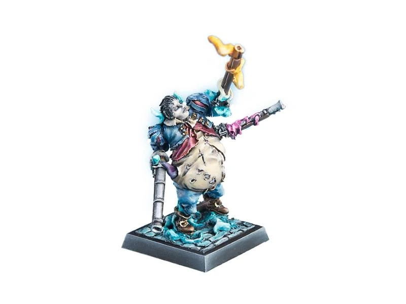 Drei dicke musketenähnliche Wummen hat er dabei. Zwar immer nur mit einem Schuss, aber mit enormer Kraft. Gekonnt eingesetzt und verstärkt stehen Umhauen, Brennend oder Gift zur Verfügung. Und im Nahkampf ist er auch nicht zu unterschätzen.
