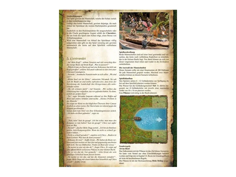 Tales of Longfall #5 ist prall gefüllt mit Szenarien. Also mit kleinen Geschichten die eine Keilerei, ein Scharmützel oder eine ausgewaschene Schlacht beschreiben und in denen eure Mannschaften die Hauptdarsteller sind. Da gilt es Schätze zu finden, strunzdumme Vögel zu fangen, Feuer oder Wasser zu entkommen, Gold zu scheffeln uvm. Natürlich versucht der Gegner euch daran zu hindern, meist, weil er genau dasselbe vorhat.