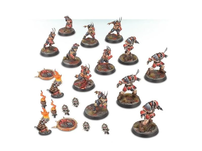 - 4 Chaos-Blocker und 8 Beastmen mit austauschbaren Köpfen – enthält Rundenmarker, Bälle, und zweiseitige Spielstandsmarken!