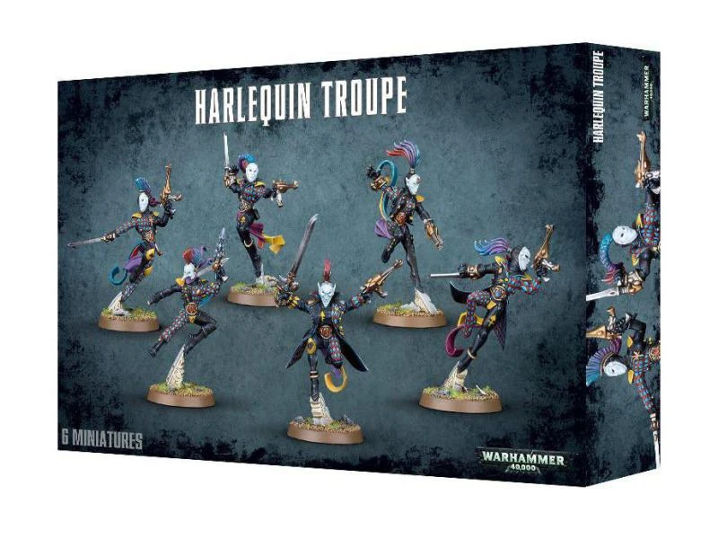 Eine der seltsamsten aller Splittergruppen der Aeldari sind die Harlequins. Diese blitzschnellen Kriegerakrobaten machen keinen Unterschied zwischen Krieg und Theaterkunst. Es sind mysteriöse Anbeter des lachenden Gottes Cegorach. Die akrobatischen Krieger verwenden atemberaubende Geschwindigkeit und Geschicklichkeit, wenn sie rituelle Geschichten für ihre Verwandten durchspielen, und finden noch mehr Verwendung, wenn sie auf dem Schlachtfeld auf ihre Feinde fallen.