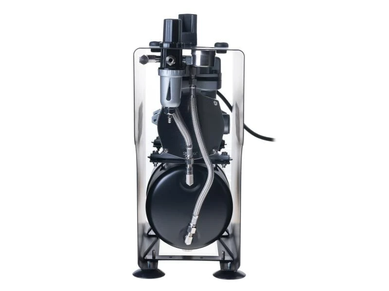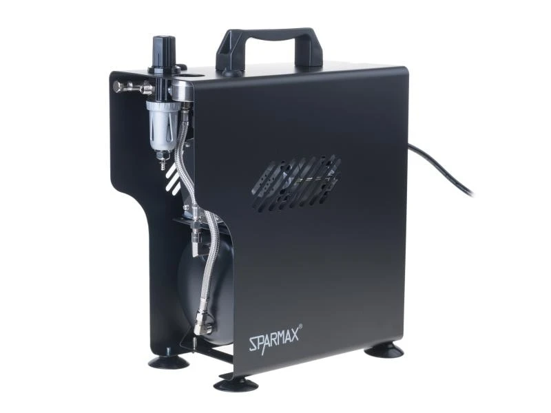Der Sparmax TC-610H Plus von Harder & Steenbeck ist ein ölfreier Kompressor mit Lufttank, der bis zu 28 Liter Druckluft je Minute mit einem Maximaldruck von 4,1 bar liefert. Zudem beeindruckt das Gerät mit der geringen Geräuschentwicklung von 53 dB. Des Weiteren verfügt der TC-610H über einen Wasserabscheider.