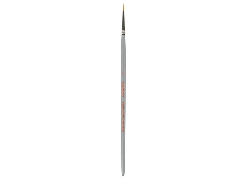 Der LuPri Expert Pinsel Rund Synthetik hat eine Spitze aus feinem Toray Synthetikhaar. Die Spitze ist mit einer nahtlosen Silberzwinge am grau lackierten, runden Holzstiel befestigt.