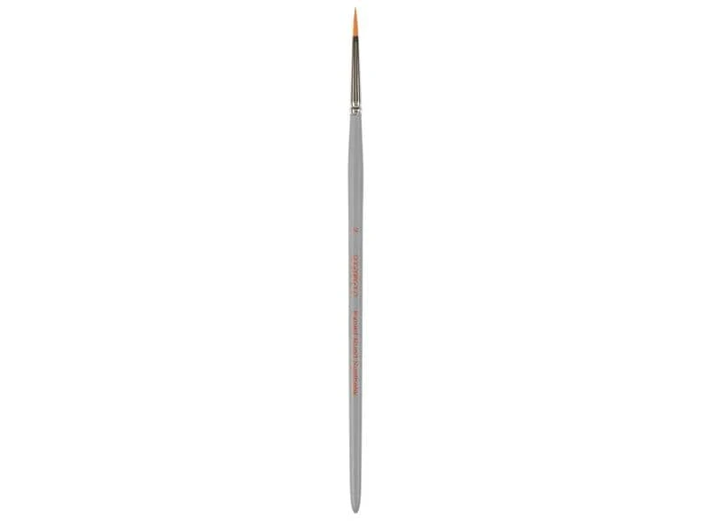 Der LuPri Expert Pinsel Rund Synthetik hat eine Spitze aus feinem Toray Synthetikhaar. Die Spitze ist mit einer nahtlosen Silberzwinge am grau lackierten, runden Holzstiel befestigt.