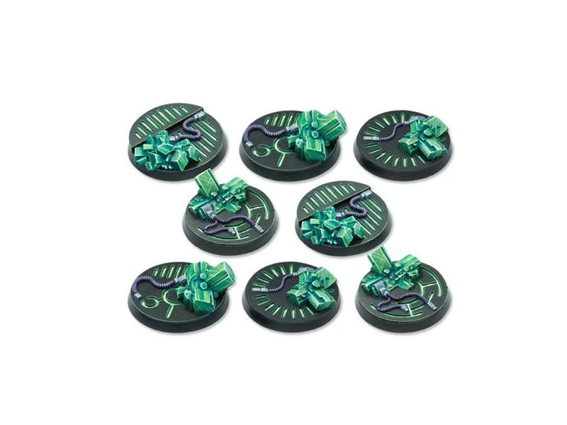 Die klaren Gravuren dieser Bases wirken wie futuristische Runen. Durch die zusätzliche Variante, bei der auch Kristalle, Kabel und Anschlüsse zu finden sind, lässt sich dieser Effekt noch mehr betonen. Die Runen selbst erinnern an Schriftzeichen in den Pyramiden und Zikkurats uralter Kulturen. Aufgrund ihrer glatten Oberfläche und den klaren Linien eignen sich diese technisch wirkenden Bases vor allem für Miniaturen von Robotern oder anderen Armeen in einem Sci-Fi-Universum. Mit diesen kunstvoll gestalteten Bases bekommen Ihre Tabletop-Streitkräfte ein noch individuelleres Erscheinungsbild, welches eine futuristische, technisierte Atmosphäre einfängt.