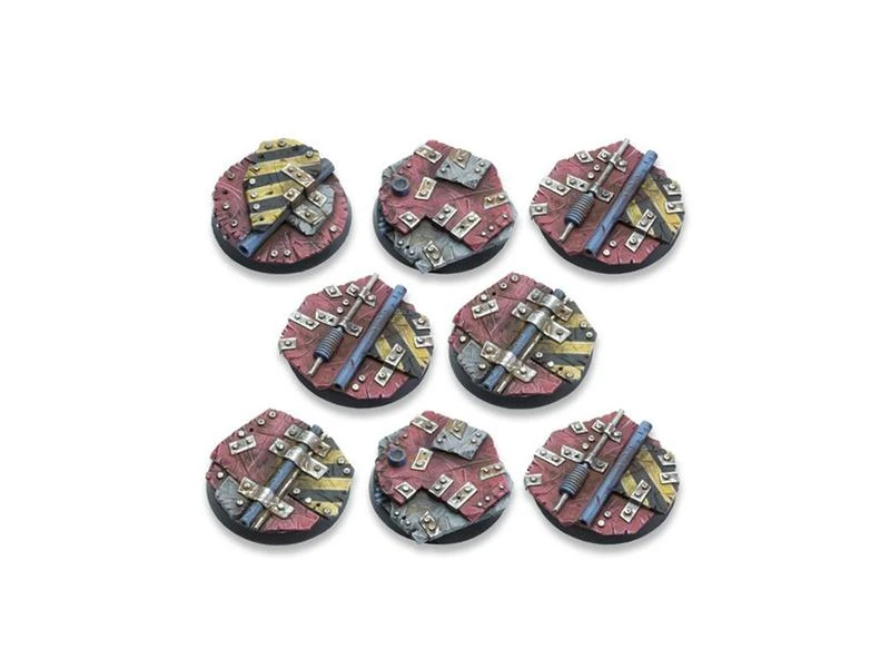 Die vielen Nieten auf den unordentlich angeordneten Stahlplatten dieser Bases wirken chaotisch und planlos. Durch die Unzahl angebrachter Platten und die teilweise unregelmässigen Formen wird der Eindruck weiter verstärkt, dass diese Böden nur grob zusammengezimmert wurden. Gelegentlich zu sehende Rohre, andere Technikteile und die vielen Kanten sorgen dafür, dass sich diese Metallplatten insbesondere für Miniaturen primitiver Sci-Fi-Armeen eignen, aber auch für andere Truppen, die viel improvisieren und es beim Bau nicht so genau nehmen. Mit diesen kunstvoll gestalteten Bases erhalten Ihre Armeen für Tabletop-Spiele einen ganz neuen Look, welcher die Atmosphäre futuristischer, zusammengeschusterter Behelfsgebäude einfängt.