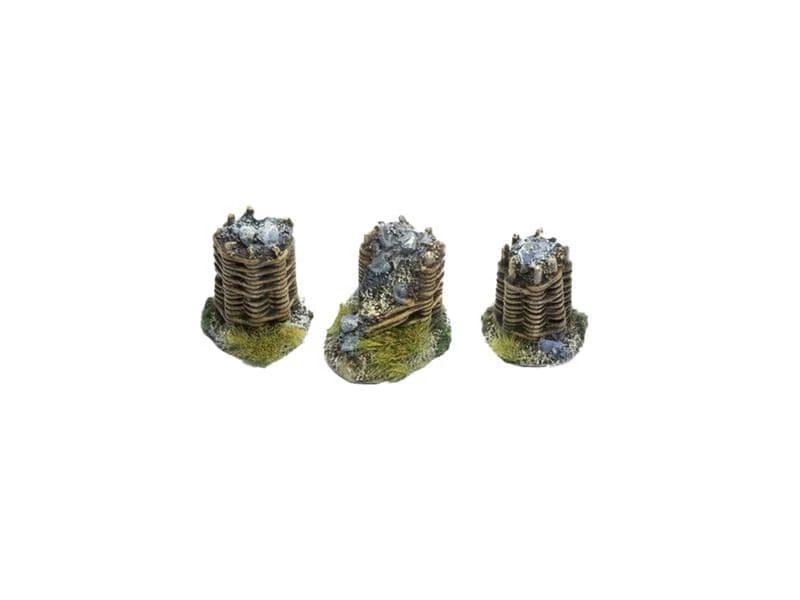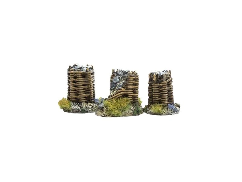 Das Set beinhaltet drei verschiedene Gabionen. Diese sind aus Resin gefertigt und im Massstab 28-30 mm.