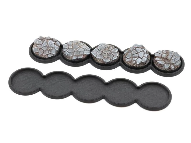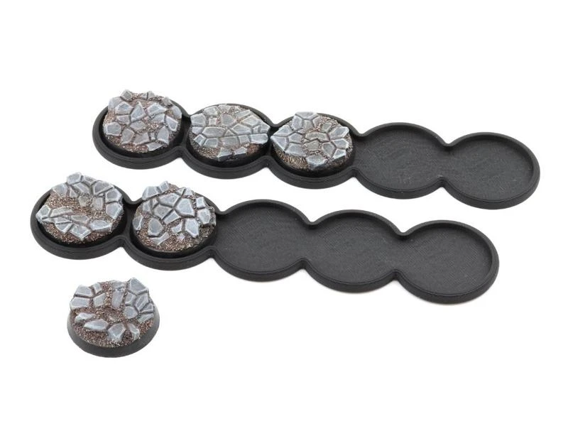 Mit diesen Movement Trays lassen sich Einheiten von Miniaturen bequem und präziese auf dem Spielfeldtisch bewegen. Auch zum sortieren der Armee in der Vitrine sind diese sehr praktisch. Die Trays werden aus hochwertigem PLA (3D-Druck-Filament) in verschiedenen Farben gefertigt. Dieses ist ungiftig, biologisch abbaubar und wird in der EU hergestellt.