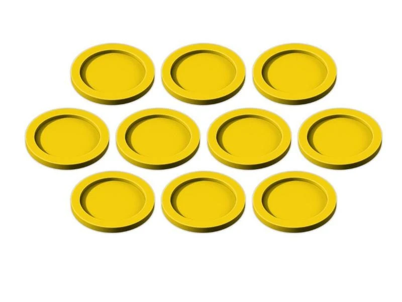 In die farbenfrohen Kunststoffplättchen werden gelochte Metallscheiben eingesetzt (oder ggf. eingeklebt), sodass Sie sie nach Belieben zwischen Miniaturen gleicher Basegrösse wechseln, anbringen und abnehmen können. Dafür muss an der Unterseite der Bases lediglich magnetische Folie angebracht sein. Möchten Sie mehrere verschiedenfarbige Skill and Squad Marker unter einem Base anbringen, so müssen Sie das Loch in der Mitte der Metallscheiben lediglich mit Neodynmagneten versehen (D: 8 mm, Höhe 1 mm).