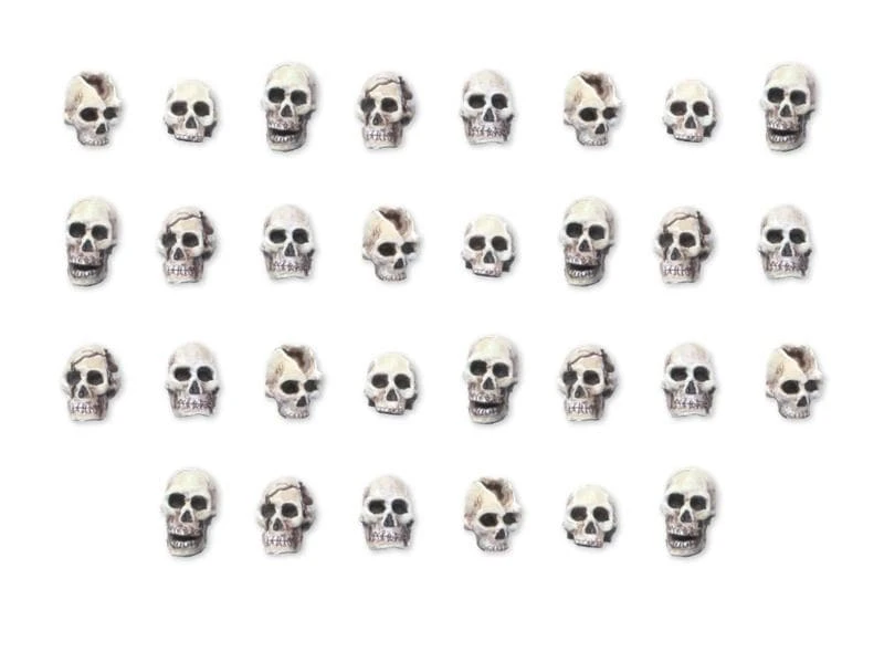 Das Set beinhaltet 30x menschliche Totenschädel aus Resin im Massstab 28-30 mm. Ideal zum Gestalten von Tabletop-Gelände, Bases und Miniaturen.