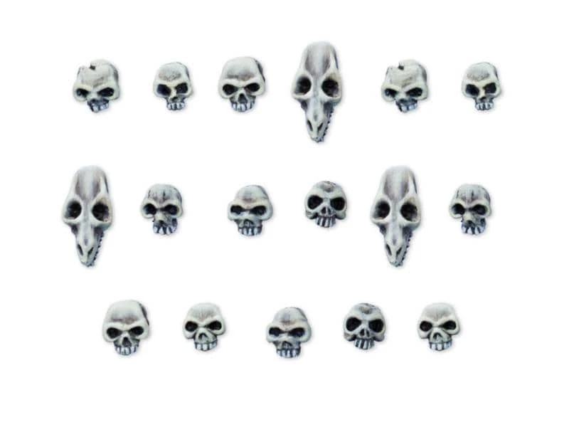 Das Set beinhaltet 17 Totenschädel im Massstab 28-30 mm. Ideal zum Gestalten von Tabletop-Gelände, Bases und Miniaturen.
