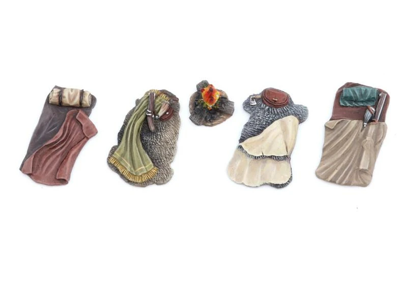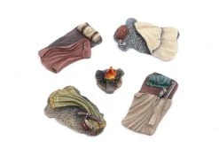 Das Trapper Lager beinhaltet 4 Schlafplätze und ein Lagerfeuer. Das Set ist aus Resin gefertigt. Massstab: 28-30 mm.