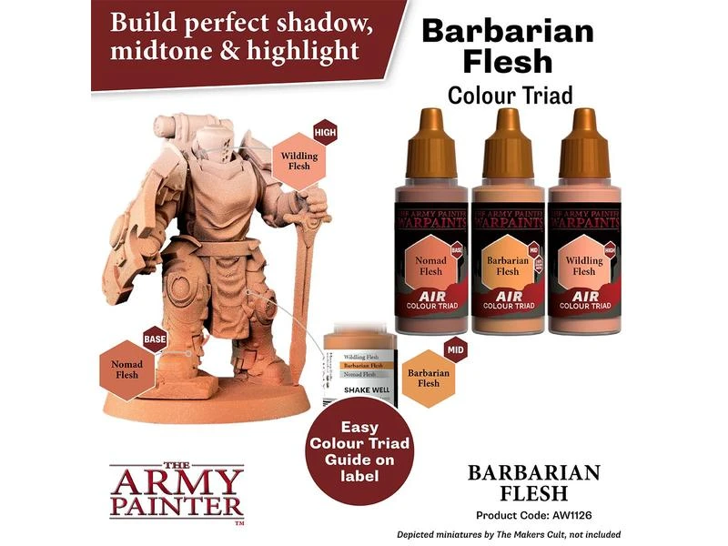 Alle Warpaints Air sind vorgemischt und direkt aus der Flasche airbrushfähig und bestehen aus ultragefilterten, lebendigen Pigmenten. Die Warpaints Air-Reihe wurde in einem einzigartigen und innovativen Triad-System entwickelt – jede passende Warpaints Acrylics-Farbe hat eine entsprechende Base- und Highlight-Farbe. Dies macht das Hervorheben und Schattieren zum Kinderspiel und die Armeebemalung noch schneller und schlüssiger. Um die Sache noch einfacher zu machen, ist Warpaints Air bereits mit zwei Stahlmischkugeln ausgestattet.