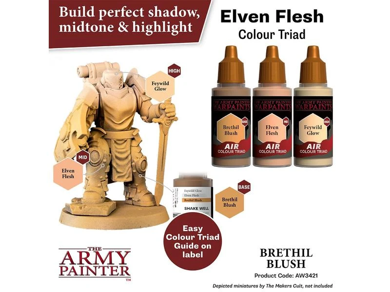 Alle Warpaints Air sind vorgemischt und direkt aus der Flasche airbrushfähig und bestehen aus ultragefilterten, lebendigen Pigmenten. Die Warpaints Air-Reihe wurde in einem einzigartigen und innovativen Triad-System entwickelt – jede passende Warpaints Acrylics-Farbe hat eine entsprechende Base- und Highlight-Farbe. Dies macht das Hervorheben und Schattieren zum Kinderspiel und die Armeebemalung noch schneller und schlüssiger. Um die Sache noch einfacher zu machen, ist Warpaints Air bereits mit zwei Stahlmischkugeln ausgestattet.