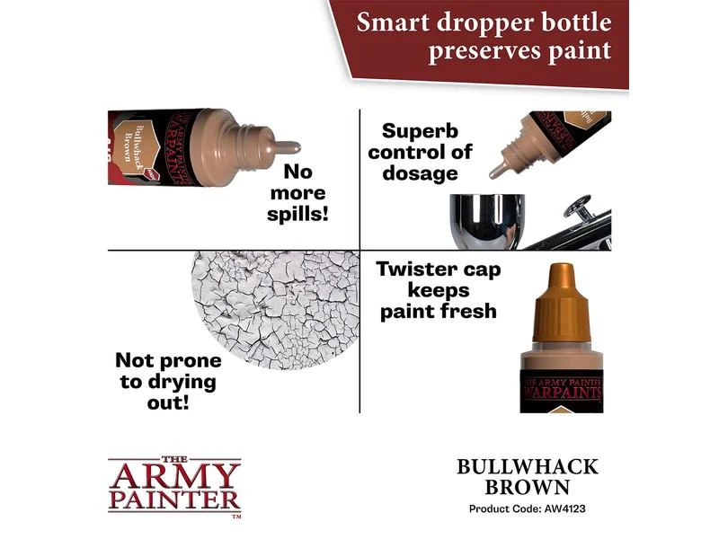 Alle Warpaints Air sind vorgemischt und direkt aus der Flasche airbrushfähig und bestehen aus ultragefilterten, lebendigen Pigmenten. Die Warpaints Air-Reihe wurde in einem einzigartigen und innovativen Triad-System entwickelt – jede passende Warpaints Acrylics-Farbe hat eine entsprechende Base- und Highlight-Farbe. Dies macht das Hervorheben und Schattieren zum Kinderspiel und die Armeebemalung noch schneller und schlüssiger. Um die Sache noch einfacher zu machen, ist Warpaints Air bereits mit zwei Stahlmischkugeln ausgestattet.