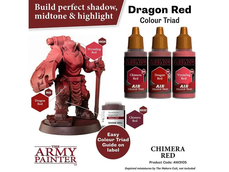 Alle Warpaints Air sind vorgemischt und direkt aus der Flasche airbrushfähig und bestehen aus ultragefilterten, lebendigen Pigmenten. Die Warpaints Air-Reihe wurde in einem einzigartigen und innovativen Triad-System entwickelt – jede passende Warpaints Acrylics-Farbe hat eine entsprechende Base- und Highlight-Farbe. Dies macht das Hervorheben und Schattieren zum Kinderspiel und die Armeebemalung noch schneller und schlüssiger. Um die Sache noch einfacher zu machen, ist Warpaints Air bereits mit zwei Stahlmischkugeln ausgestattet.