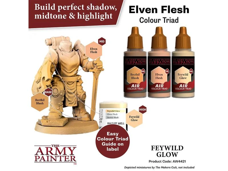 Alle Warpaints Air sind vorgemischt und direkt aus der Flasche airbrushfähig und bestehen aus ultragefilterten, lebendigen Pigmenten. Die Warpaints Air-Reihe wurde in einem einzigartigen und innovativen Triad-System entwickelt – jede passende Warpaints Acrylics-Farbe hat eine entsprechende Base- und Highlight-Farbe. Dies macht das Hervorheben und Schattieren zum Kinderspiel und die Armeebemalung noch schneller und schlüssiger. Um die Sache noch einfacher zu machen, ist Warpaints Air bereits mit zwei Stahlmischkugeln ausgestattet.