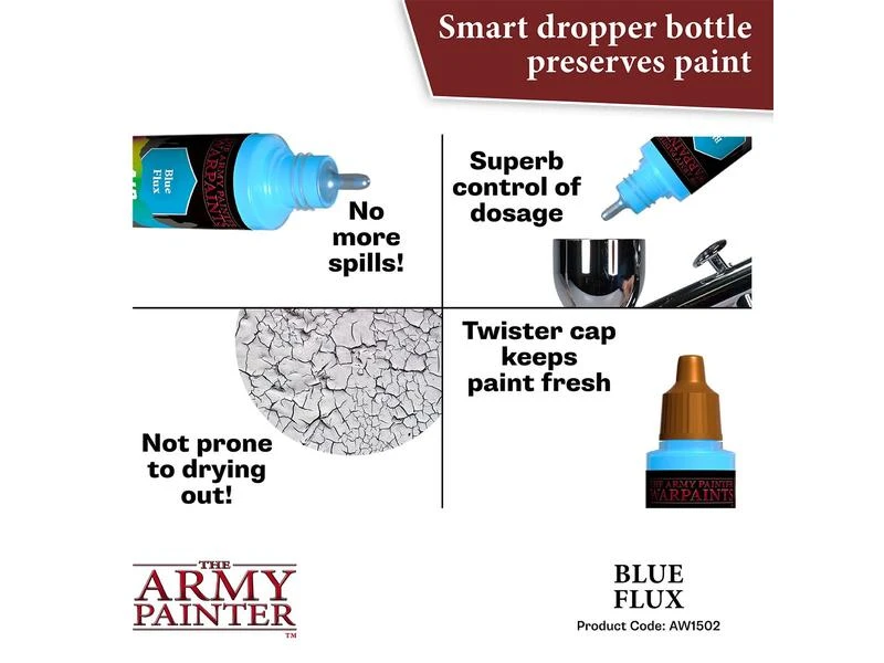 Alle Warpaints Air sind vorgemischt und direkt aus der Flasche airbrushfähig und bestehen aus ultragefilterten, lebendigen Pigmenten. Das Warpaints Air-Sortiment wurde nach einem einzigartigen und innovativen Triad-System entwickelt – jede passende Warpaints Acrylics-Farbe hat eine entsprechende Base- und Highlight-Farbe. Dies macht das Hervorheben und Schattieren zum Kinderspiel und die Armeebemalung noch schneller und schlüssiger. Um die Sache noch einfacher zu machen, ist Warpaints Air bereits mit zwei Stahlmischkugeln ausgestattet.