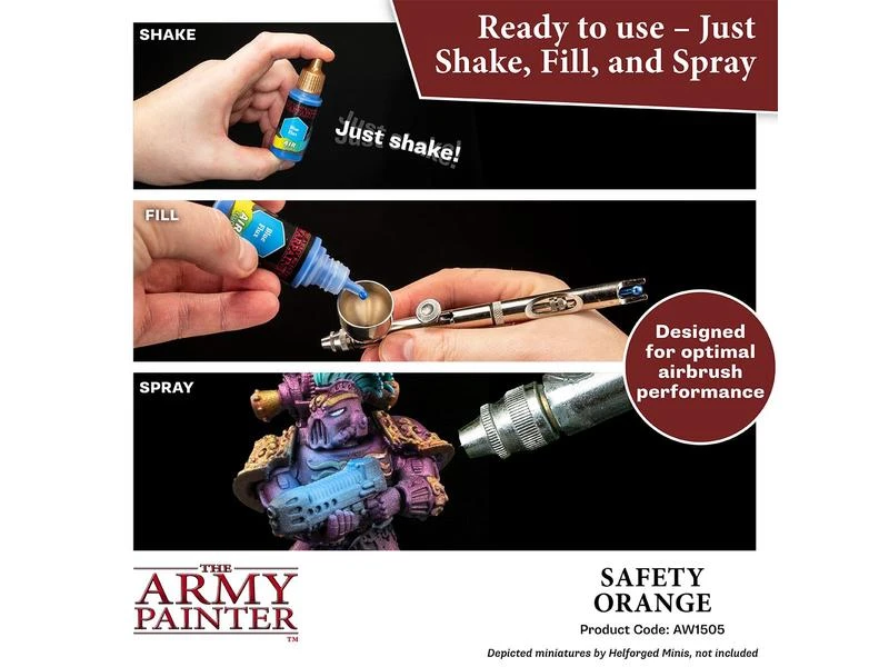 Alle Warpaints Air sind vorgemischt und direkt aus der Flasche airbrushfähig und bestehen aus ultragefilterten, lebendigen Pigmenten. Das Warpaints Air-Sortiment wurde nach einem einzigartigen und innovativen Triad-System entwickelt – jede passende Warpaints Acrylics-Farbe hat eine entsprechende Base- und Highlight-Farbe. Dies macht das Hervorheben und Schattieren zum Kinderspiel und die Armeebemalung noch schneller und schlüssiger. Um die Sache noch einfacher zu machen, ist Warpaints Air bereits mit zwei Stahlmischkugeln ausgestattet.