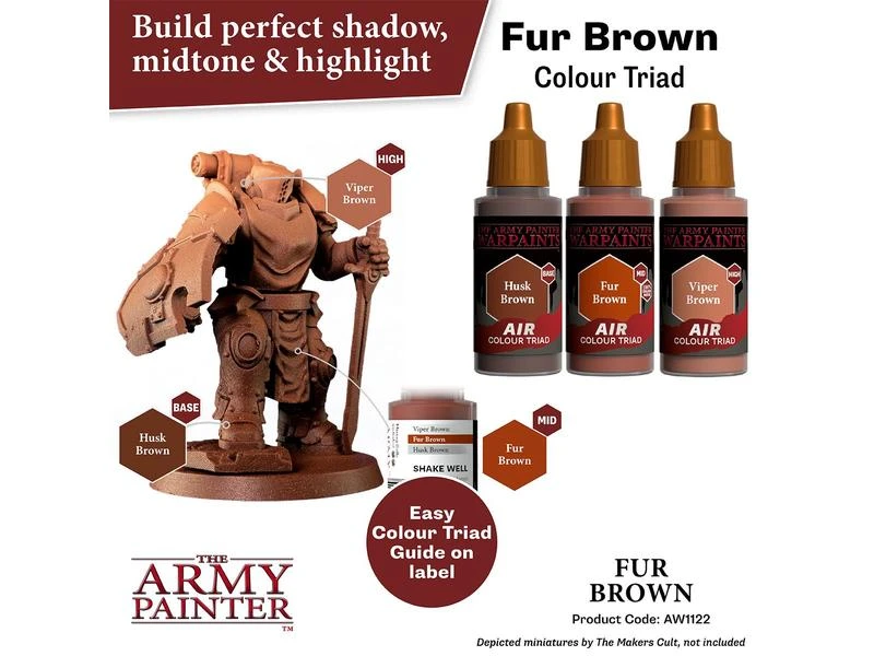 Alle Warpaints Air sind vorgemischt und direkt aus der Flasche airbrushfähig und bestehen aus ultragefilterten, lebendigen Pigmenten. Die Warpaints Air-Reihe wurde in einem einzigartigen und innovativen Triad-System entwickelt – jede passende Warpaints Acrylics-Farbe hat eine entsprechende Base- und Highlight-Farbe. Dies macht das Hervorheben und Schattieren zum Kinderspiel und die Armeebemalung noch schneller und schlüssiger. Um die Sache noch einfacher zu machen, ist Warpaints Air bereits mit zwei Stahlmischkugeln ausgestattet.