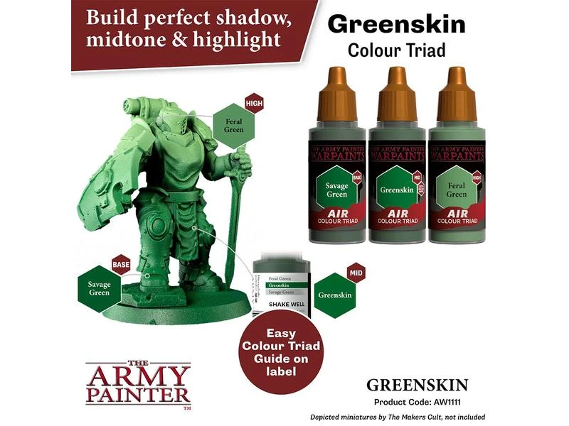 Alle Warpaints Air sind vorgemischt und direkt aus der Flasche airbrushfähig und bestehen aus ultragefilterten, lebendigen Pigmenten. Die Warpaints Air-Reihe wurde in einem einzigartigen und innovativen Triad-System entwickelt – jede passende Warpaints Acrylics-Farbe hat eine entsprechende Base- und Highlight-Farbe. Dies macht das Hervorheben und Schattieren zum Kinderspiel und die Armeebemalung noch schneller und schlüssiger. Um die Sache noch einfacher zu machen, ist Warpaints Air bereits mit zwei Stahlmischkugeln ausgestattet.