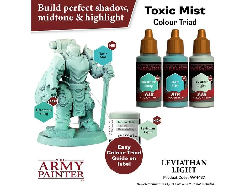 Alle Warpaints Air sind vorgemischt und direkt aus der Flasche airbrushfähig und bestehen aus ultragefilterten, lebendigen Pigmenten. Die Warpaints Air-Reihe wurde in einem einzigartigen und innovativen Triad-System entwickelt – jede passende Warpaints Acrylics-Farbe hat eine entsprechende Base- und Highlight-Farbe. Dies macht das Hervorheben und Schattieren zum Kinderspiel und die Armeebemalung noch schneller und schlüssiger. Um die Sache noch einfacher zu machen, ist Warpaints Air bereits mit zwei Stahlmischkugeln ausgestattet.