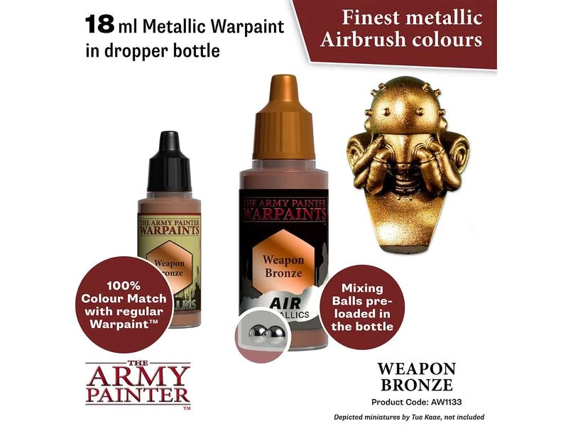 Alle Warpaints Air sind vorgemischt und direkt aus der Flasche airbrushfähig und bestehen aus ultragefilterten, lebendigen Pigmenten. Das Warpaints Air-Sortiment wurde nach einem einzigartigen und innovativen Triad-System entwickelt – jede passende Warpaints Acrylics-Farbe hat eine entsprechende Base- und Highlight-Farbe. Dies macht das Hervorheben und Schattieren zum Kinderspiel und die Armeebemalung noch schneller und schlüssiger. Um die Sache noch einfacher zu machen, ist Warpaints Air bereits mit zwei Stahlmischkugeln ausgestattet.