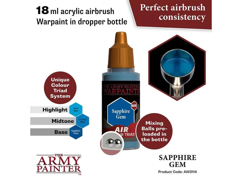 Alle Warpaints Air sind vorgemischt und direkt aus der Flasche airbrushfähig und bestehen aus ultragefilterten, lebendigen Pigmenten. Die Warpaints Air-Reihe wurde in einem einzigartigen und innovativen Triad-System entwickelt – jede passende Warpaints Acrylics-Farbe hat eine entsprechende Base- und Highlight-Farbe. Dies macht das Hervorheben und Schattieren zum Kinderspiel und die Armeebemalung noch schneller und schlüssiger. Um die Sache noch einfacher zu machen, ist Warpaints Air bereits mit zwei Stahlmischkugeln ausgestattet.