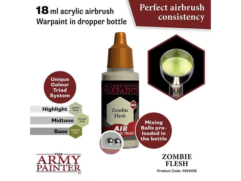 Alle Warpaints Air sind vorgemischt und direkt aus der Flasche airbrushfähig und bestehen aus ultragefilterten, lebendigen Pigmenten. Die Warpaints Air-Reihe wurde in einem einzigartigen und innovativen Triad-System entwickelt – jede passende Warpaints Acrylics-Farbe hat eine entsprechende Base- und Highlight-Farbe. Dies macht das Hervorheben und Schattieren zum Kinderspiel und die Armeebemalung noch schneller und schlüssiger. Um die Sache noch einfacher zu machen, ist Warpaints Air bereits mit zwei Stahlmischkugeln ausgestattet.