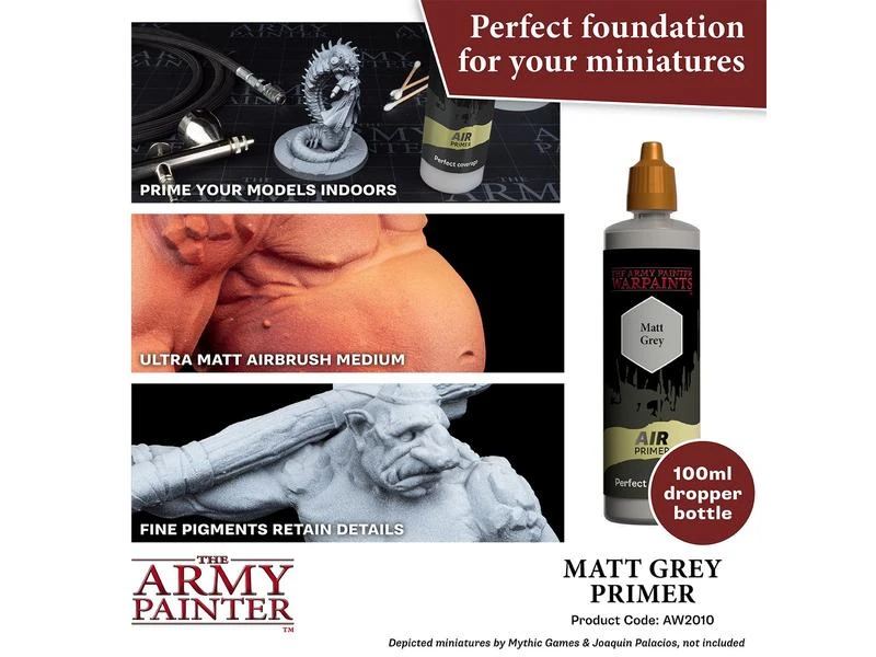 Die Warpaints Air Primer sind hochwertige Acrylgrundierungen auf Wasserbasis für die Verwendung mit einer Airbrush. Diese Grundierungen wurden entwickelt, um eine glatte und gleichmässige Schicht zu gewährleisten, wenn sie mit einer Airbrush aufgetragen werden, und bilden die ideale Grundlage für jedes Malprojekt. Die gefilterten Pigmente, die in einem ultramatten Harzmedium enthalten sind, sorgen dafür, dass jedes Detail Ihrer Miniaturen erhalten bleibt.