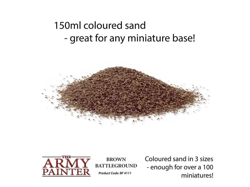 Bringen Sie Ihre bemalten Miniaturen auf die nächste Stufe mit einer grossartigen Grundierung. Farbiger Sand in 3 verschiedenen Grössen für die perfekte Grundlage jeder Basis. Kann auch in jeder beliebigen Farbe bemalt werden, um jedes Klima oder jede Umgebung nachzubilden. Perfekt für Landschaften und Dioramen und leicht zu verstauen.