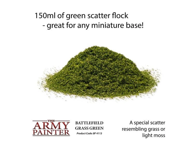 Eine spezielle Streuung, die an Gras oder leichtes Moos erinnert. Kann zur Abdeckung der gesamten Basis oder in kleineren Büscheln auf Brown Battleground verwendet werden. Erinnert an Gras auf einer Miniaturbasis. Verwenden Sie es zusammen mit anderen Büscheln oder Basismaterialien, um einen grösseren Effekt zu erzielen.