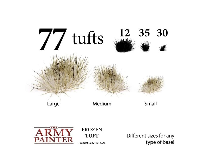 Der Frozen Tuft ist perfekt für die Dekoration einer gefrorenen Tundra, eisigen Ebenen oder anderen kalten Umgebungen. Kombinieren Sie es mit Battlefield Snow für Perfektion. Sieht super realistisch aus und ist in 3 verschiedenen Grössen für jede Basisgrösse erhältlich. Mit Hilfe einer Pinzette und Superkleber leicht anzubringen.