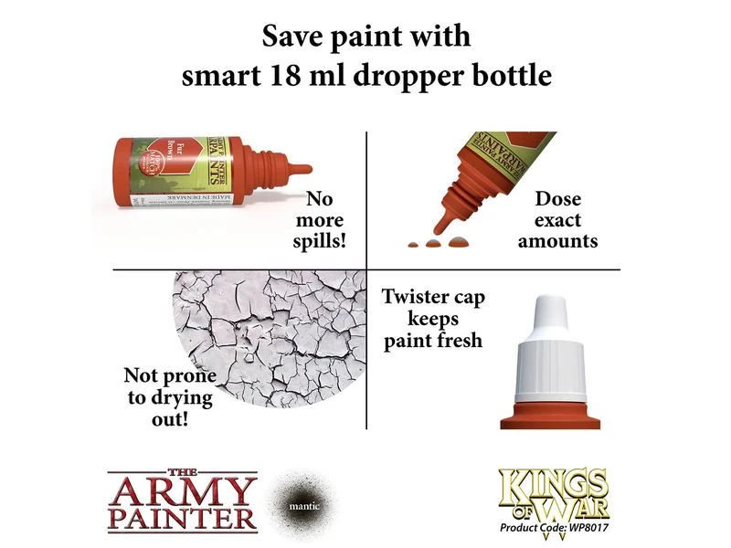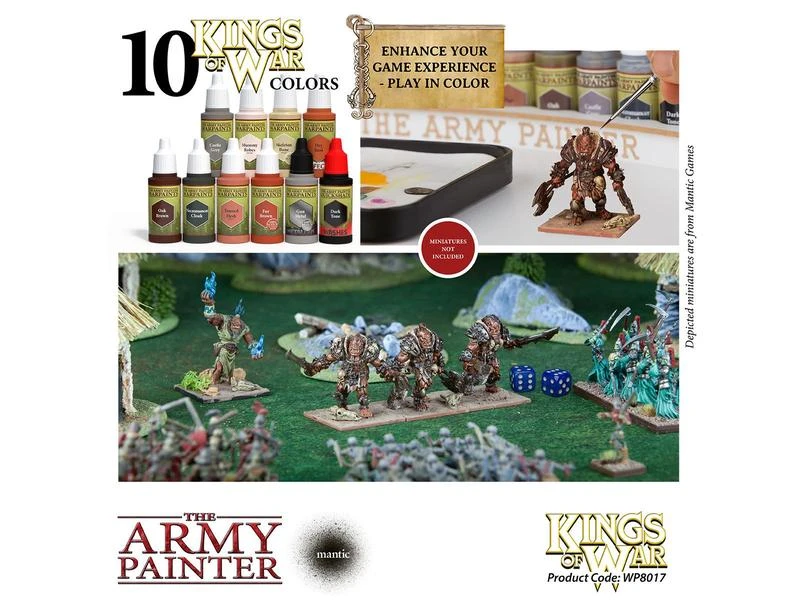 Die Oger von Mantica sind eine zähe Rasse, die aus dem rauen Klima der Mammutsteppe im Norden stammt. Dieses Reich aus hartem Grasland und eisigen Hochebenen ist alles andere als gastfreundlich, und ein hartes Leben erwartet jeden Menschen, der waghalsig genug ist, sich dort niederzulassen. Trotz ihres rauen Aussehens sind die Oger keine einfachen Monster. Sie sind gerissene Kämpfer und gewiefte Unterhändler, die ihr Handwerk als Söldner auf der ganzen Welt ausüben. Das Oger-Bemalungsset hat eine Farbpalette, mit der du jede Art von Oger-Armee bemalen kannst, einschliesslich ihrer Fell- und Knochenrüstungen und rauen Waffen. Perfektes Oger-Einsteiger-Farbset – Dieses Set enthält eine Auswahl an Farben, die sich perfekt zum Bemalen der monströsen Streitkräfte der Oger-Königreiche eignen – einschliesslich ihrer Waffen und Kriegsmaschinen.