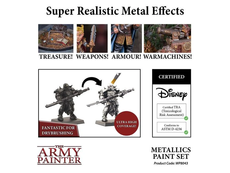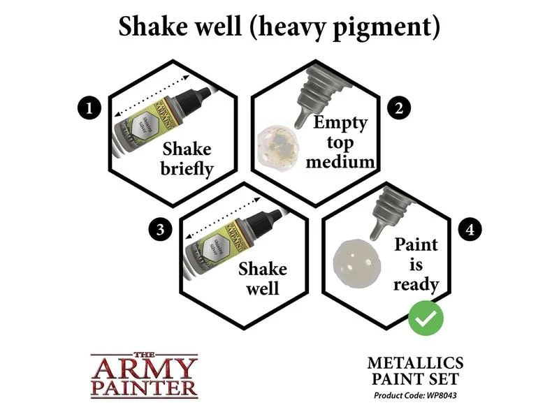 Diese 8 Metallic-Warpaints werden in 18-ml-Tropfflaschen geliefert, mit denen Sie die richtige Menge Farbe für Ihre Miniaturen dosieren können. Die leichte, cremige Viskosität dieser Acryl-Metallic-Warppaints eignet sich perfekt für grosse und kleine Miniaturen, und sie lassen sich perfekt miteinander mischen, so dass Sie jede gewünschte Variation erzielen können.