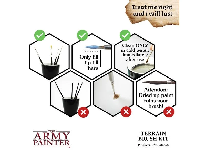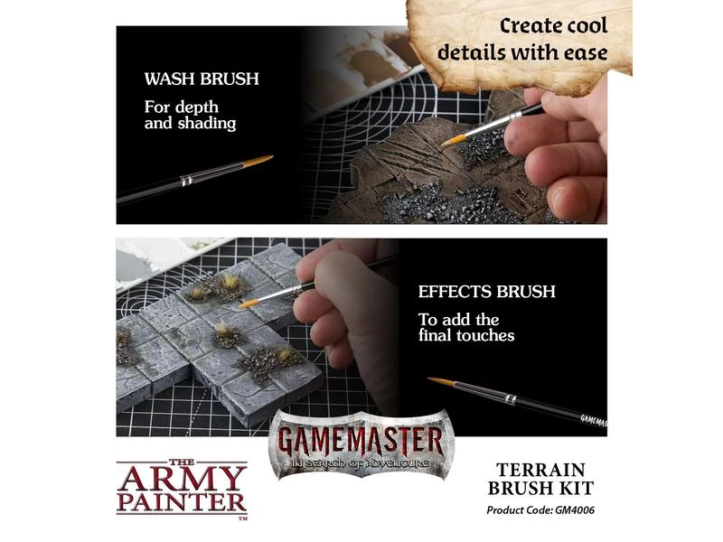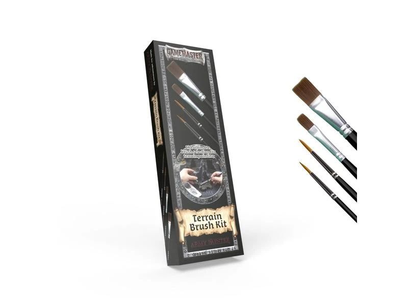 Die ultimative Pinselauswahl für die Geländemalerei! Das Gamemaster: Terrain Brush Kit enthält 4 Pinsel, die speziell für die Bemalung von Geländestücken aus XPS-Schaum, Styropor und MDF-Platten entwickelt wurden.