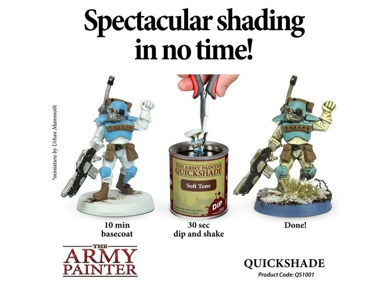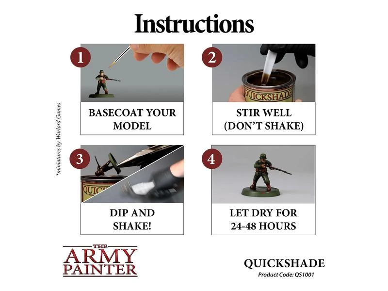 Das Original Quickshade ist anders! Dieses auf dem Markt einzigartige Produkt ermöglicht es Ihnen, Ihre Armee im Handumdrehen zu bemalen. Tragen Sie es einfach mit einem Pinsel auf oder tauchen Sie Ihre grundierten Miniaturen ein, schütteln Sie sie und Sie sind fast fertig. Der Quickshade Dark Tone besteht aus sehr dünnem schwarzem Pigment und hat sich als Hit für böse Miniaturenarmeen und Modelle erwiesen, die einen scharfen Kontrast in Farben und Schattierungen erfordern. Er eignet sich besonders für graue, blaue und alle Arten von Rüstungen.