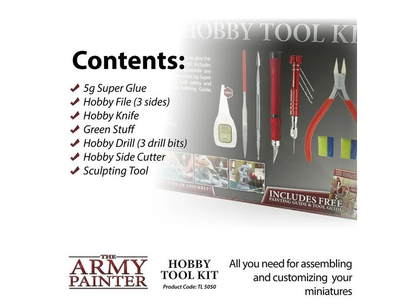 Dieses erstaunliche Set wurde entwickelt, um dem Wargamer ein «One Box Fits All»-Werkzeugset zu bieten. Es enthält alle grundlegenden Werkzeuge, die Sie für den Zusammenbau einer Miniaturarmee benötigen. Es enthält auch einen kostenlosen 5g Superkleber sowie einen Leitfaden für die Sicherheit von Werkzeugen und den Army Painter Technique Painting Guide.