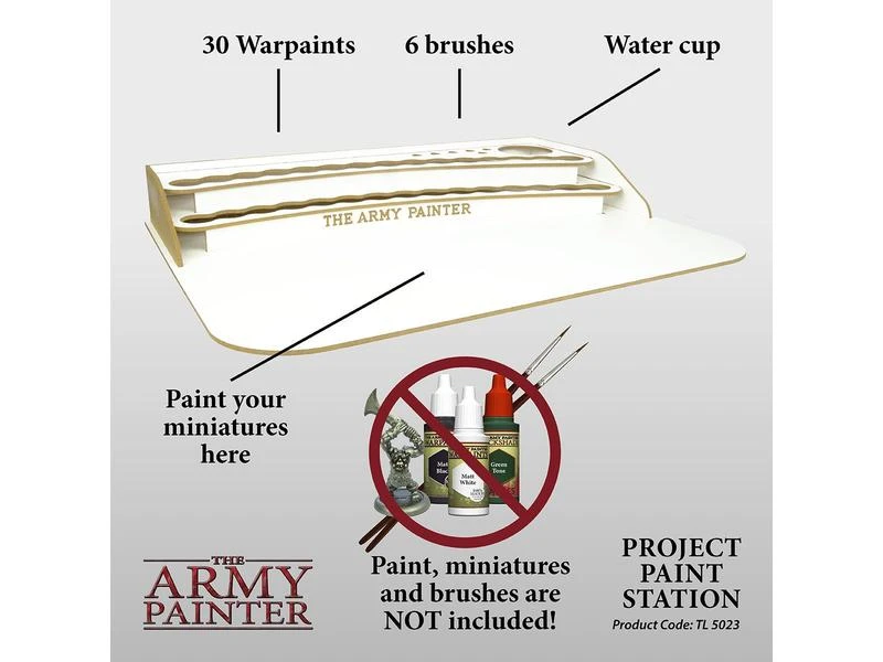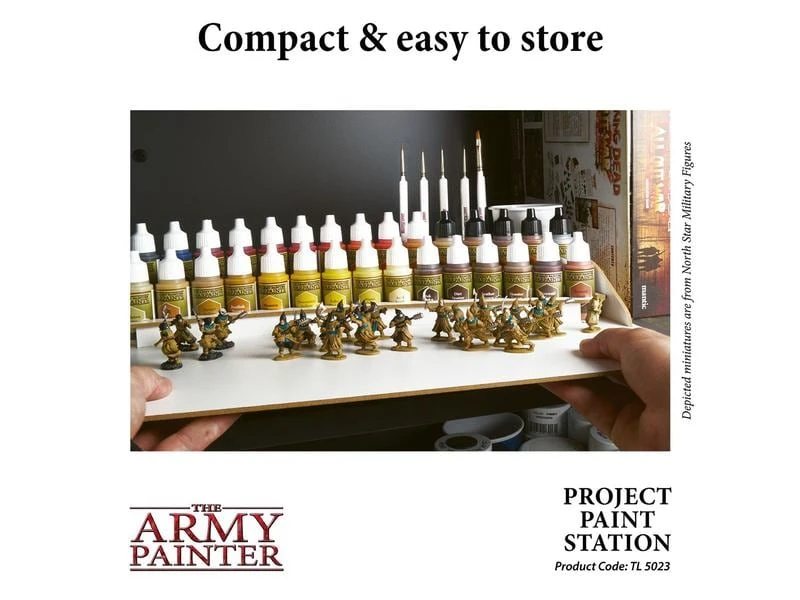 Die Army Painter Project Paint Station ist das perfekte Zubehör für den tadellosen Bastler, der alle seine Warpaints in Reichweite und gut sortiert für die Bemalung haben möchte. Die Project Paint Station kann bis zu 30 verschiedene Warpaints und 6 Pinsel aufnehmen, das ist mehr als genug für jedes Malprojekt. Aufgrund der Grösse und des Designs, leicht zu verstauen – eine effektive Möglichkeit, Ihr Malprojekt auf engem Raum zu bewältigen.