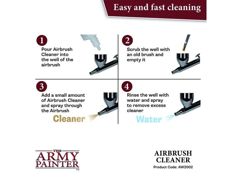 Der Army Painter Airbrush Cleaner ist ein ungiftiges, wasserbasiertes Reinigungsprodukt, das speziell zur Entfernung von Acrylfarbenrückständen an schwer zugänglichen Stellen Ihrer Airbrush entwickelt wurde. Der Airbrush Cleaner sorgt für eine optimale und langfristige Leistung Ihrer Airbrush.