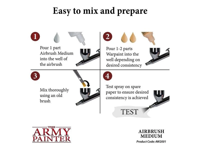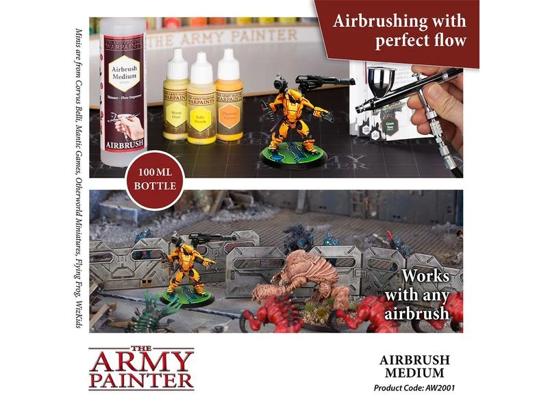 Dieses Airbrush Medium, das in einer grossen 100 ml-Flasche geliefert wird, ist sehr vielseitig, und jede hochwertige Acrylfarbe wird davon profitieren. Eine echte Qualität dieses Produkts ist, dass das Airbrush Medium nicht nur als Verdünner für Acrylfarben funktioniert – sondern auch als Verlaufsverbesserer!