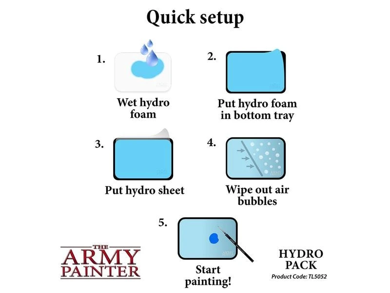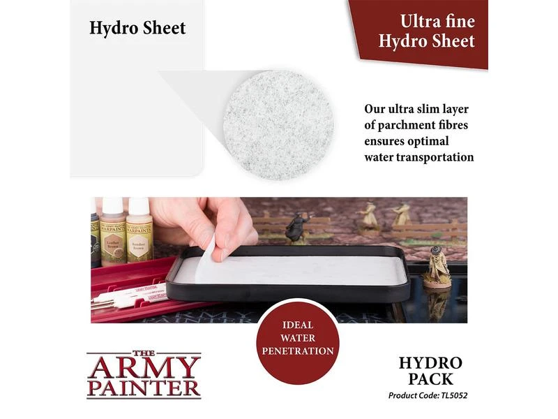 Nachfüllpack für die Army Painter Wet Palette. Dieses Hydro Pack enthält 50x Hydro-Blätter und 2x luftdichte Hydro-Schäume.