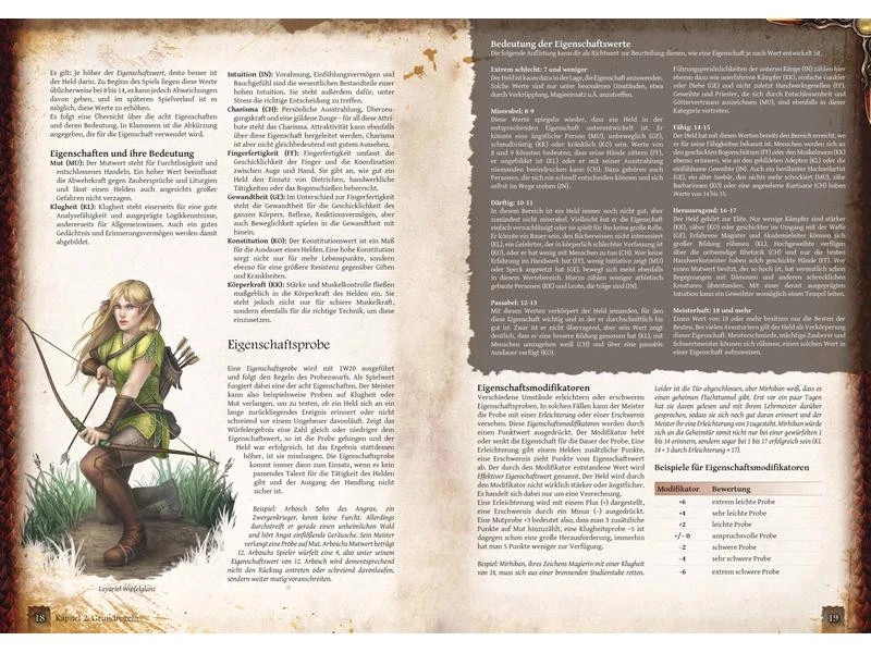 paar Stifte, Würfel und dieses Buch. Hier erfahren Sie alles über die Regeln des Spiels. Schritt für Schritt werden Sie durch das Regelwerk geführt und lernen mehr über den Kampf, die Anwendung von Talenten, die Magie und das Götterwirken Aventuriens.