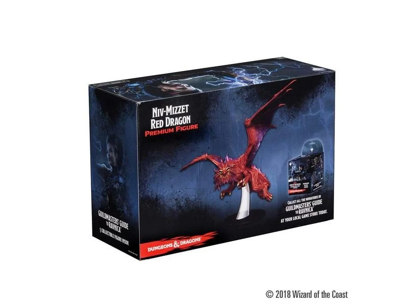 Das wunderschöne Detail dieser Premium-Figur unterstreicht die unglaubliche Kraft des Drachenzauberers Niv-Mizzet! Bringen Sie mit dieser Premium-Figur die fantastische Innovation und Kreativität der Izzet-Gilde in Ihr Ravnica-Abenteuer!