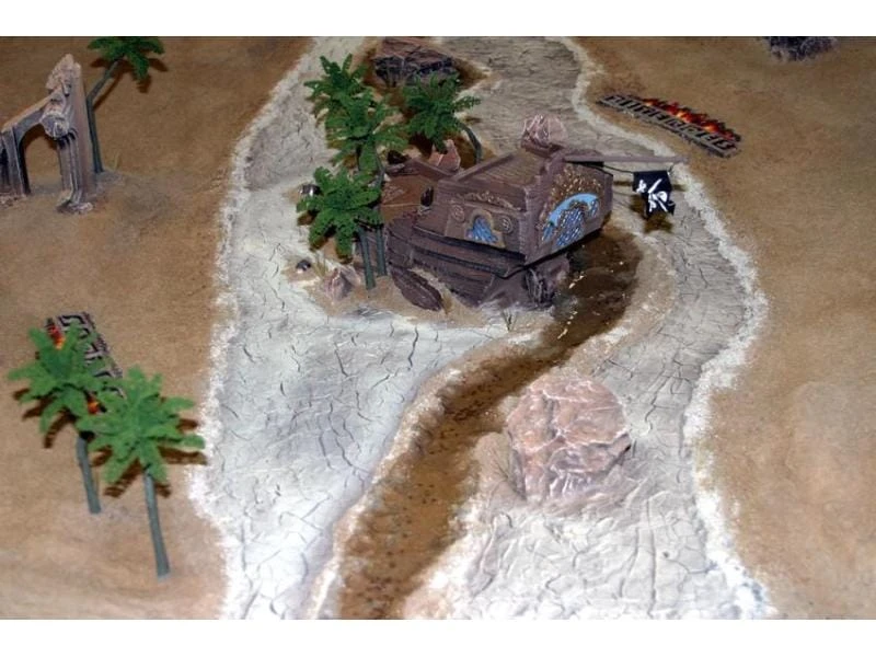 - Sowohl auf Miniaturbases als auch auf grösseren Flächen zur Erstellung eines ausgetrockneten Flussbetts oder einer Wüste anwendbar